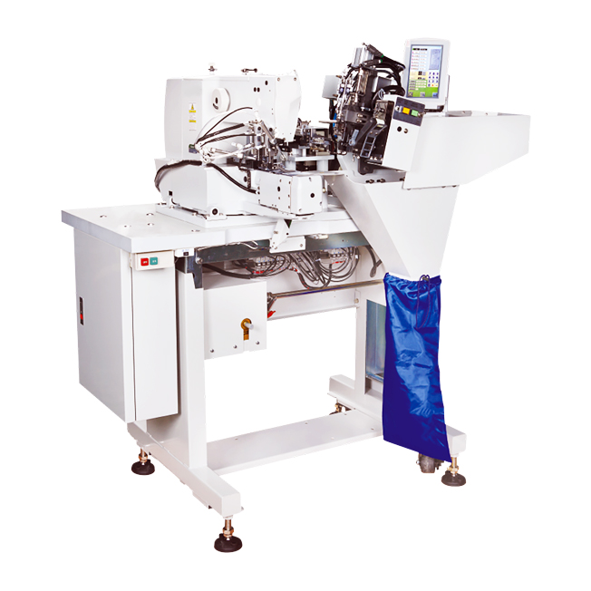 This S-254 is mainly used for attaching jeans and casual pants belt loop. It is simple and easy to operate. Processes of automatic checking, cutting, folding and tacking are completed in one time. It offers flexible adjustment, and high efficiency production.
